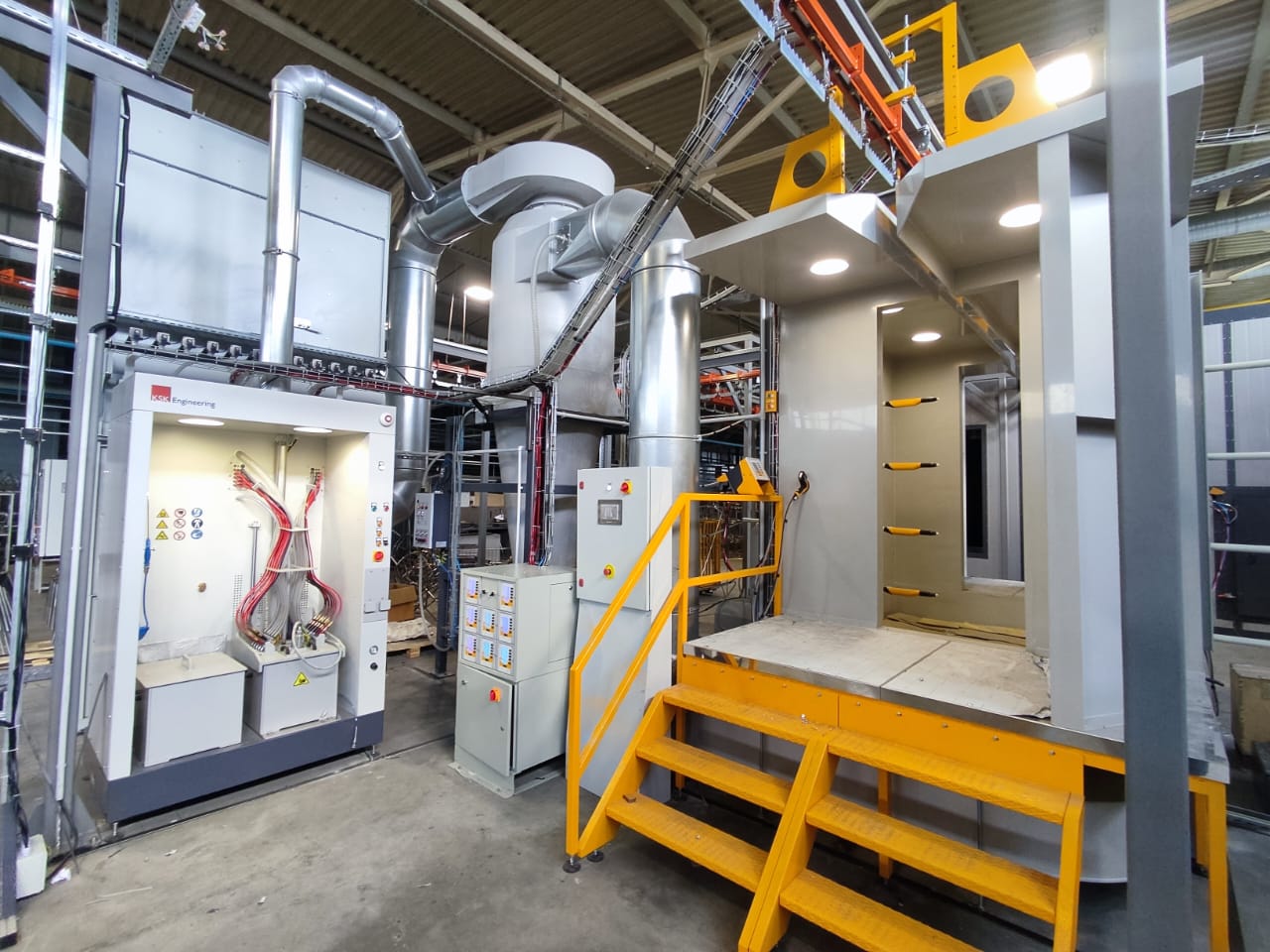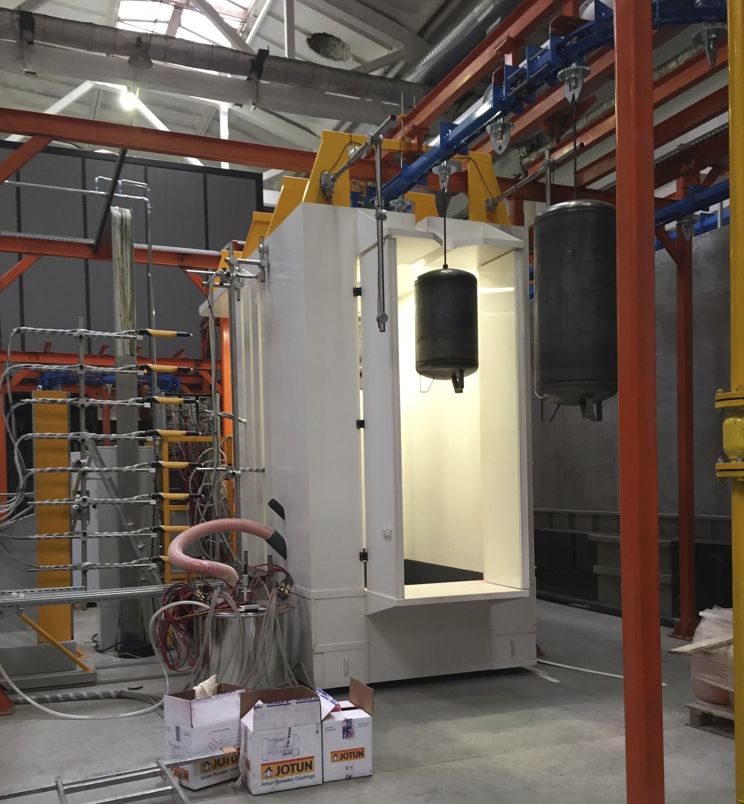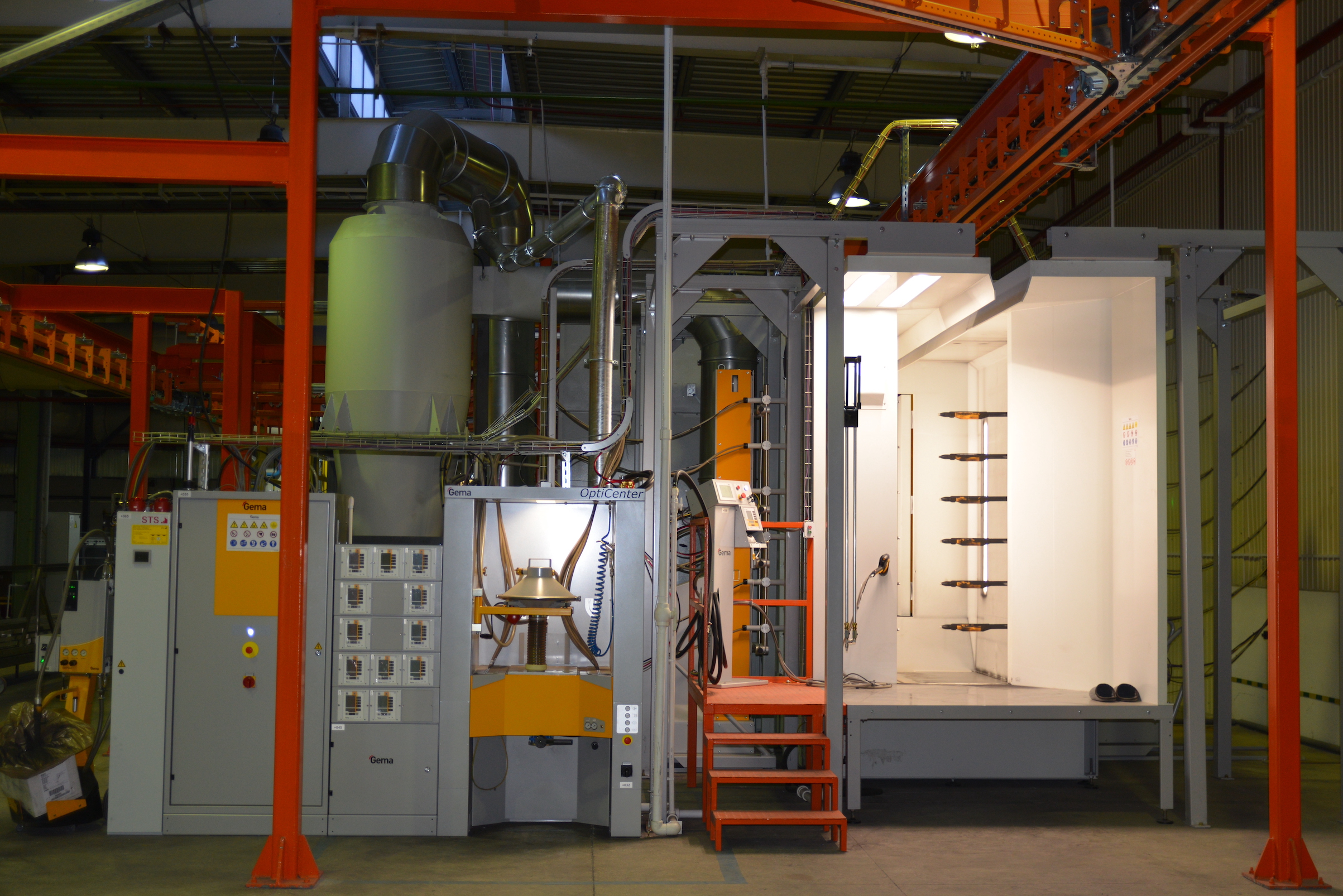 Камера позволяет производить быструю смену цвета благодаря антистатическим свойствам корпуса и отсутствию наслоений порошка внутри камеры. Всасывание воздуха организовано с пола равномерно по всей длине камеры. В процессе работы производится постоянная очистка пола камеры методом обдува сжатым воздухом через встроенные в пол форсунки. Ручные посты для подкраски могут быть добавлены по желанию клиента, на входе или выходе кабины.